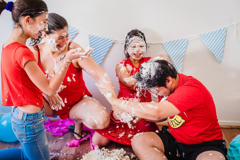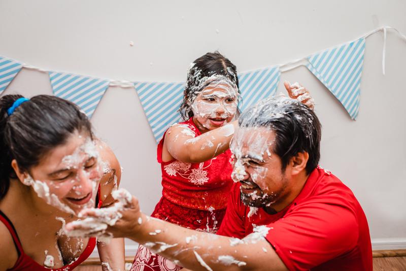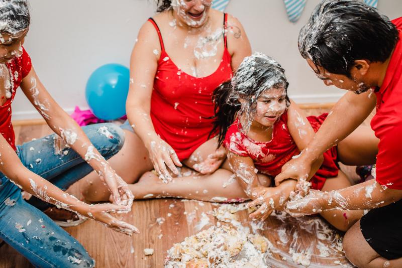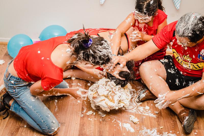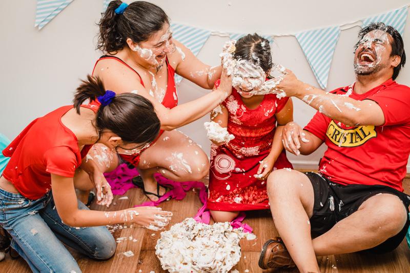 La sesión Smash Cake Familiar es un momento verdaderamente especial y fuera de lo común. Imaginen a toda la familia reunida alrededor de un pastel delicioso que, en lugar de ser cortado, se convierte en el epicentro de la diversión. Cada miembro, desde los más pequeños hasta los más grandes, se une en un festín de risas mientras el pastel termina por todos lados. Es un caos controlado lleno de alegría y espontaneidad, donde las caras felices están cubiertas de crema y la diversión es la regla número uno. Esta sesión es una experiencia que crea recuerdos únicos y una narrativa visual que refleja la autenticidad y la alegría de la familia en su forma más pura.